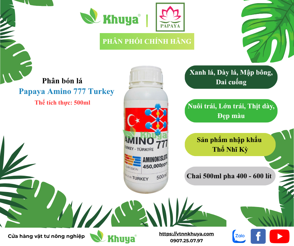 Phân bón lá Papaya Amino 777 Turkey 500ml