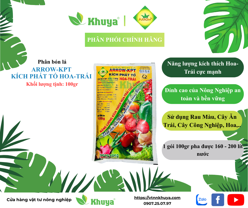 Điều hòa sinh trưởng Arrow KPT Kích Phát Tố Hoa Trái 100gr Quang Nông