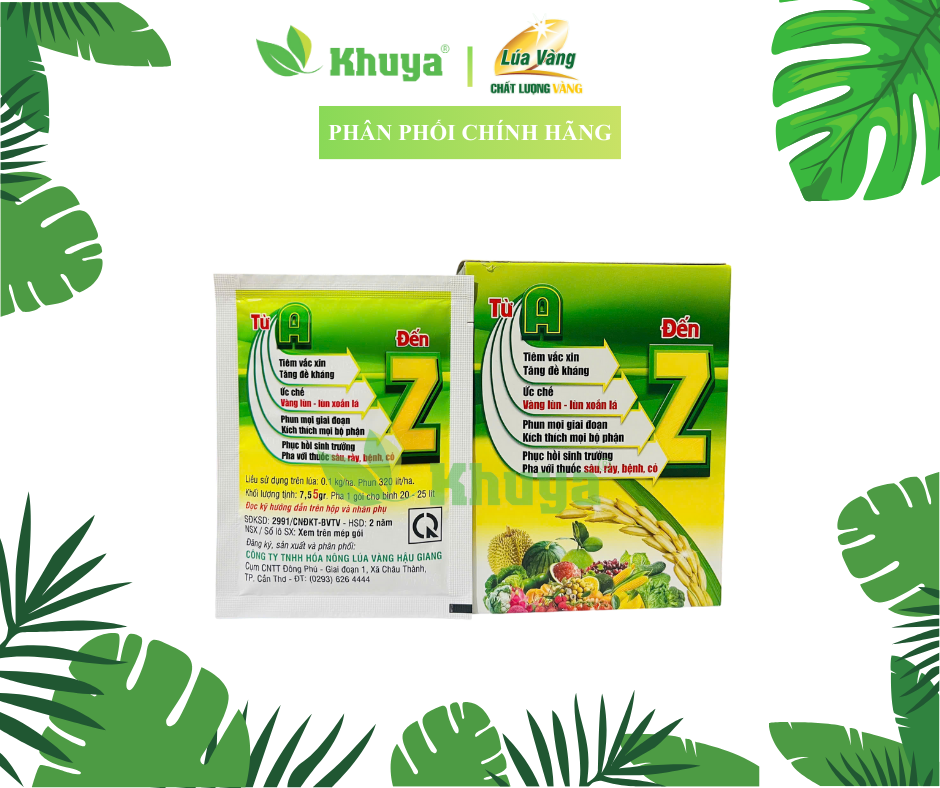 Từ A: Thêm Vắc xin - Tăng đề kháng - Ức chế Vàng lùn và Lùn xoắn lá - Phun mọi giai đoạn - Kích thích mọi bộ phận cây trồng - Phục hồi sinh trưởng - Pha với thuốc sâu, rầy, bệnh, cỏ Đến Z