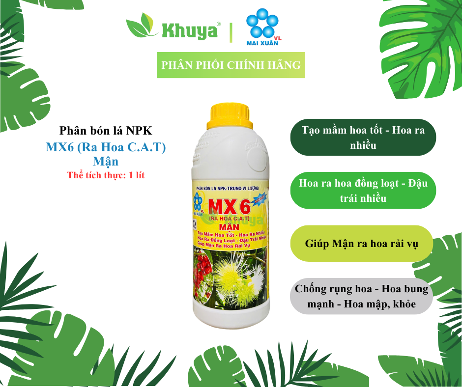 Phân Bón Lá Hỗn Hợp NPK MX6 Đặc Hiệu Ra Hoa C.A.T Mận 1 lít
