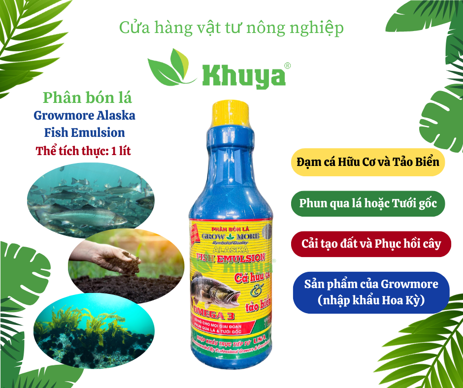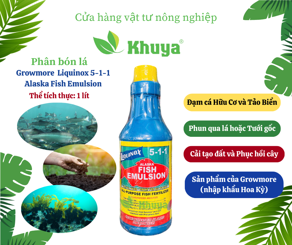 Phân bón lá Growmore Alaska Fish Emulsion Cá hữu cơ và Tảo biển (5-1-1) 1 lít