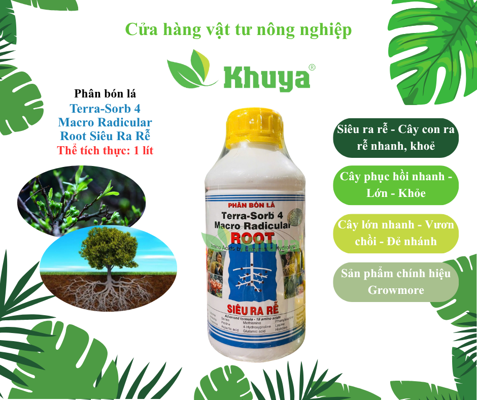 Phân bón lá NPK sinh học Growmore Terra Sorb 4 ROOT Siêu ra rễ chai 1 lít