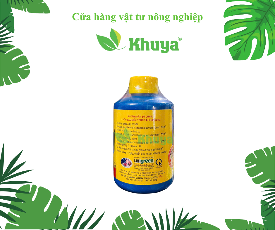 Đặc biệt hiệu quả cho Hoa lan, cây cảnh (trồng trong bồn, chậu), hoa hồng, hoa lài, cúc, vạn thọ, huệ, lài, mai, tulip, cẩm chướng, bon sai, cây giống trong vườn ươm. Liều lượng: 10 – 20ml/bình 8 lít.