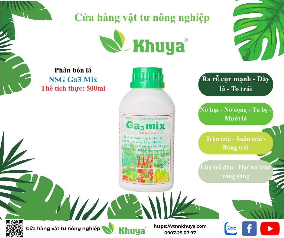 Phân Bón Lá NPK Ga3 Mix chai 500ml Ra Rễ - Dày Lá - Mướt Lá