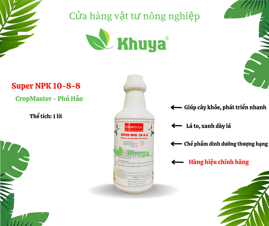 * Công dụng : SUPER 6-14-6 là chế phẩm dinh dưỡng đậm đặc: Đạm cá - Rong biển - Axit mùn - Vi lượng - Vitamin, giúp tăng đậu trái, chống rụng trái non. Cung cấp nguồn dinh dưỡng đa năng.