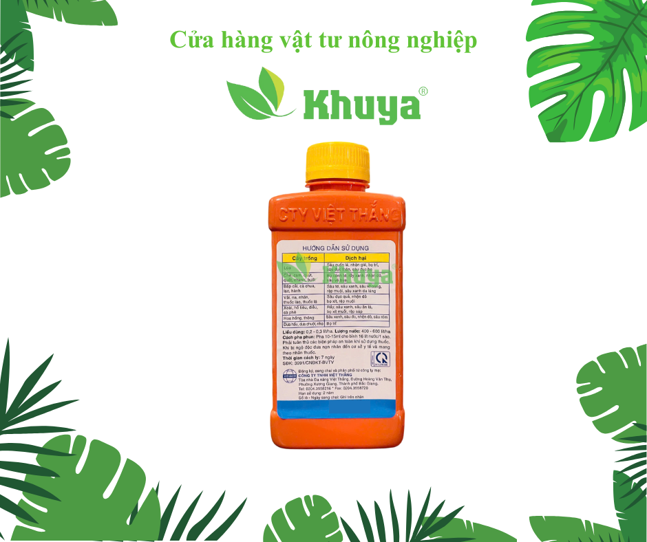 Công dụng: Hoạt chất Emamectin benzoate tiếp xúc, nội hấp, lưu dẫn phổ tác dụng rộng, đặc trừ nhiều loại sâu bệnh trên nhiều loại cây trồng khác nhau như: Sâu vẽ bùa, nhện đỏ hại cam, rầy hại xoài, rệp muỗi hại nhãn, bọ trĩ hại dưa hấu, dưa leo, nho, sâu đục quả, bọ xít, sâu ăn lá, sâu tơ, sâu xanh, sâu khoang, sâu đo, sâu róm, rầy, bọ xít muỗi,....