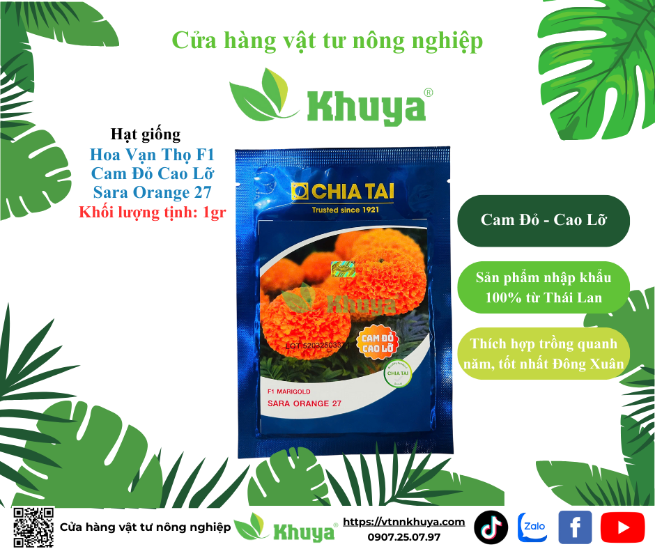 Hạt giống Hoa Vạn Thọ Chia Tai Cam Đỏ Cao Lỡ 1gr (>300 hạt) Sara Orange 27