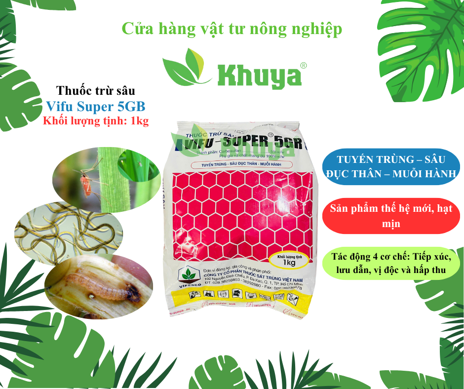 Thuốc trừ sâu VIFU SUPER 5GR ĐẶC TRỊ TUYẾN TRÙNG – SÂU ĐỤC THÂN – MUỖI HÀNH